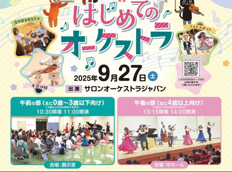 乳幼児と親がリラックスして楽しめる0歳からの・はじめてのオーケストラは、長さも内容も丁度よいと好評です。指揮体験や充実の楽器体験で小学生が探険するように楽しめるオーケストラ探険コンサート、懐かしの名曲で青春時代を思い出すワルツ・タンゴ・映画音楽のコンサートなどさまざまなニーズに応じたイベントが実施できます。