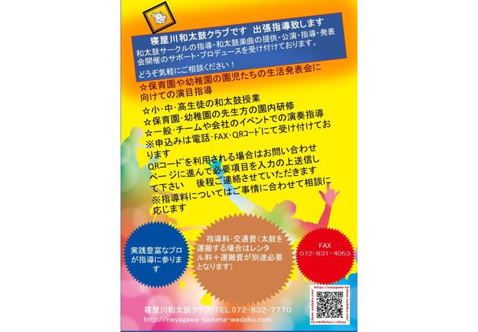 ●和太鼓の出張指導(寝屋川和太鼓クラブが出張指導します)