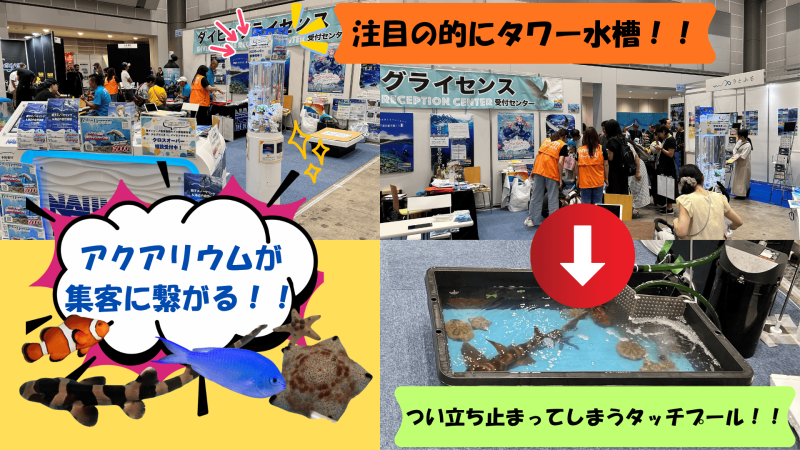 集客力アップに効果抜群! コンテンツ多数。専門スタッフが生体紹介してくれる移動水族館が目玉です。展示に加え触れて、学べて、遊べる水族館。オシャレでアートなアクアリウムは空間演出に加え集客効果もあります。35年の実績でお役立ちできる自信があります。安心・安全にイベントを盛り上げましょう!