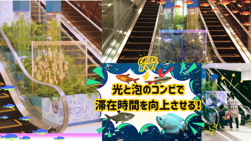 タワー水槽や泡文字水槽でインパクトのあるスペース装飾・演出が実現できます